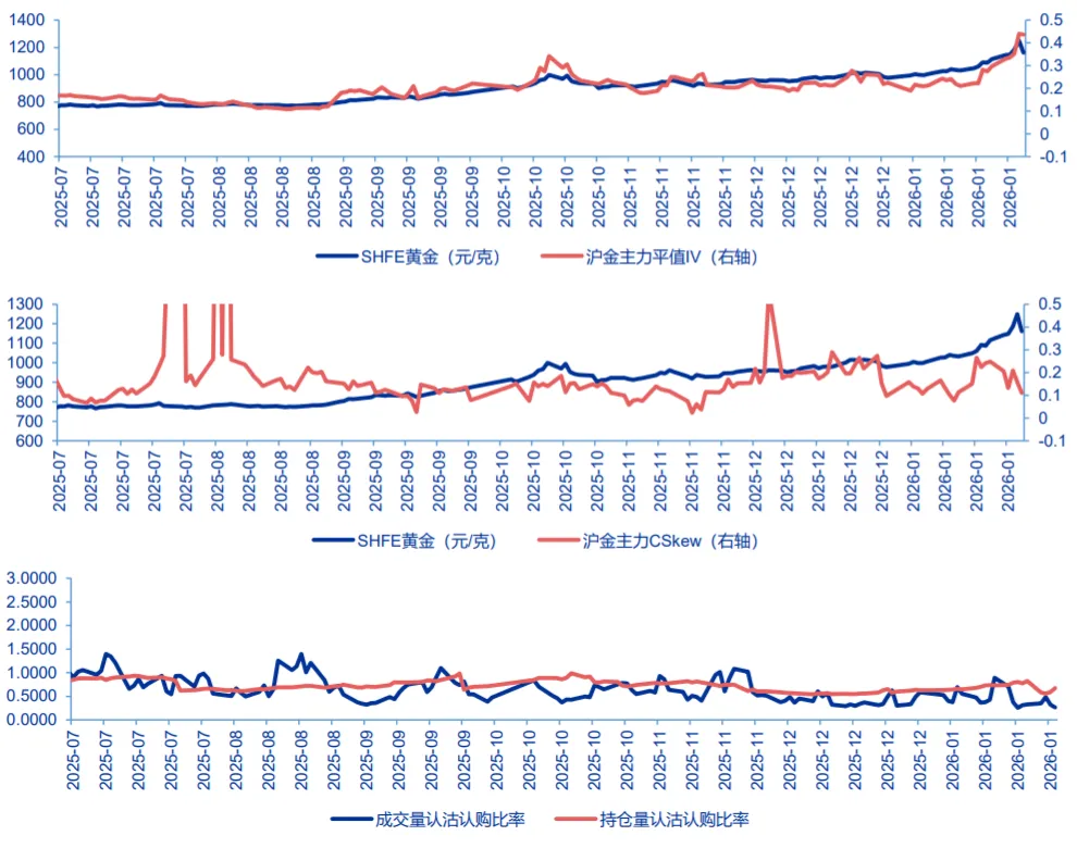 ⚫贵金属:短期仍处于降低波调整阶段,静待波动率回到低位。上周特朗普释放美伊和谈信号+特朗普提名相对鹰派的沃什作为美联储主席,黄金白银价格均大幅下跌,带动工业金属回落。从中期逻辑来看,我们认为沃什上台并不意味着美联储系统性转向鹰派,黄金中期逻辑并未破坏。从交易指标来看,目前沪金的隐含波动率仍处于历史的极端高位,偏度也显著回落,同时认沽认购持仓量的比率也从底部上行,沪银也是如此。我们在《黄金行情的宏观驱动与微观交易性指标复盘——全球资产配置方法论黄金框架性报告之八》详细分析了历史沪金突破和见顶微观特征,在维持中长期看涨黄金的背景下,本次沪金短期回撤结束的指标为隐含波动率、偏度、认沽认购持仓量的比率回到低位,在上述条件没有达成之前,金价预计在高位区间内震荡来完成降波调整。3)从商品比价来看,在本次巨幅调整过后,金银比大幅回升,但是仍处于下行趋势中。如果以金价为锚去看油价和铜价,发现油铜都处于历史的极高性价比区域,而从油铜比来看,油价处于极度低估区域。