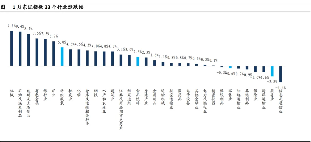 中期来看,私募基金以及两融资金带动下,成长、小票有望成为年内市场主要风格,应注重在公募基金持仓较重的板块之外寻找预期差机会。宽基层面应注重中证1000、中证2000指数投资机会,1月以来中证2000指数(8.9%)表现已经显著超越创业板(4.5%)及主板。行业层面,应该从公募基金四季度持仓较重的电子(持仓占比22.9%)、通信(11.1%)、电新(9.3%)、医药(8.1%)四个板块之外寻找机会。并且从1月已经显著表现过的商业航天、有色板块来看,行业短期快速大涨后应更加注重规避风险。