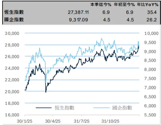 关注港股beta的同时、更聚焦“资产+资金”双重共振下的中长期配置价值。年初以来港股ADT达2,676亿港币、较25年全年+7%,该行测算若2026年港股ADT每提升100亿港币、则2026e盈利同比增速+2.4ppt;过往港交所估值走势与恒生指数整体一致,但9月以来较恒指跑输11ppt。往前看,资产+资金的重塑,或打开港交所盈利弹性与长期增长空间,建议持续关注港交所配置价值。