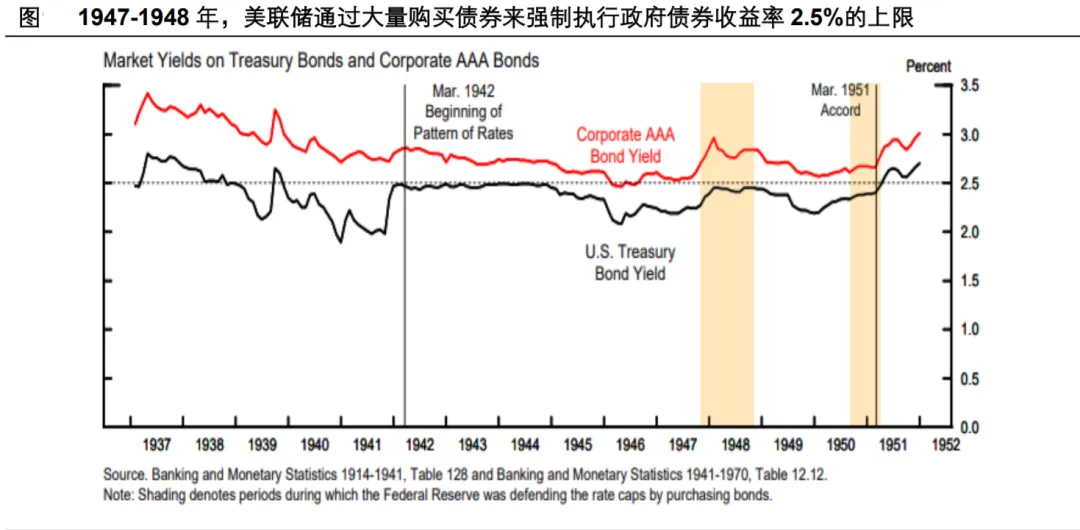 3)短端利率下降幅度很可能超过市场目前对2026年不到2次降息的预期,但长端利率未必随之下行,供给压力和潜在的通胀风险都会推动长端风险溢价上行,最终美联储实施YCC(收益率曲线控制)等非常规工具并非不可能。上世纪四十年代后期,国际环境处于“冷战”的序幕阶段,美国