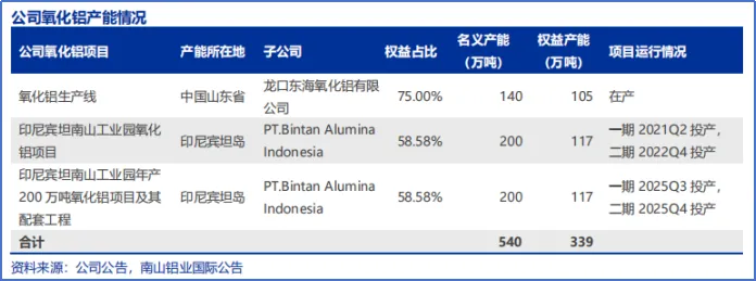 同时,子公司南山铝业国际在印尼拥有400万吨/年氧化铝产能,其中最新一条产线于2025年12月顺利投产。