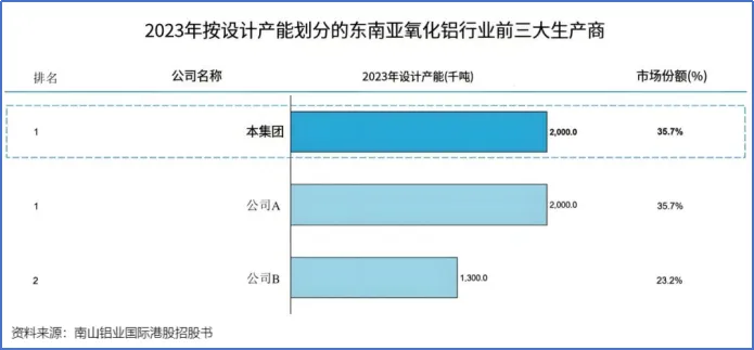 2023年,南山铝业国际氧化铝的设计产能高达200万吨,在东南亚市场中占据35.7%的份额,排名第一。