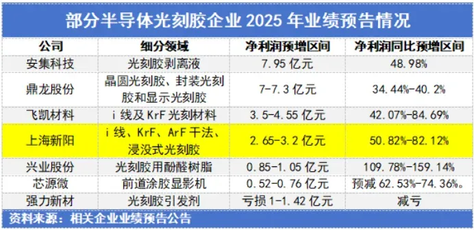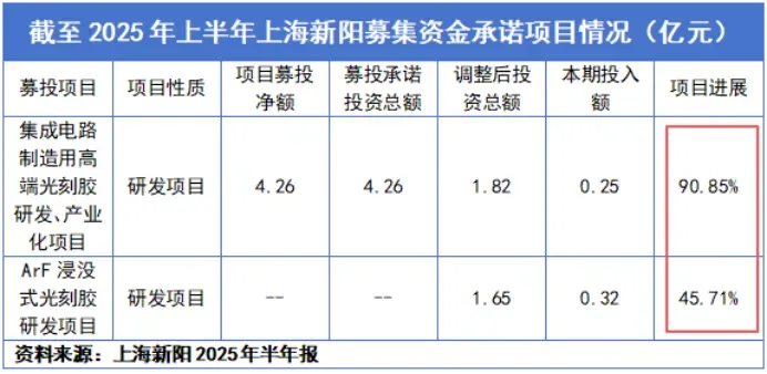据2025年半年报,上海新阳ArF浸没式光刻胶项目研发进展不到50%,ArF干法光刻胶仍处于研发阶段,尚未达到预计效益。