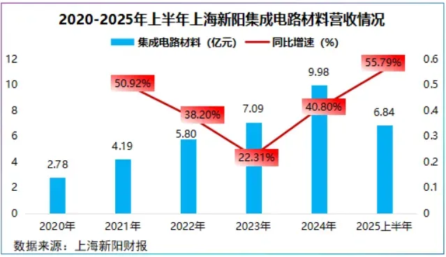 当年,公司电子材料收入首次突破5亿元,达到5.76亿元,同比增长38.2%,到2024年,该业务规模已逼近10亿元,形成持续的高增长态势。