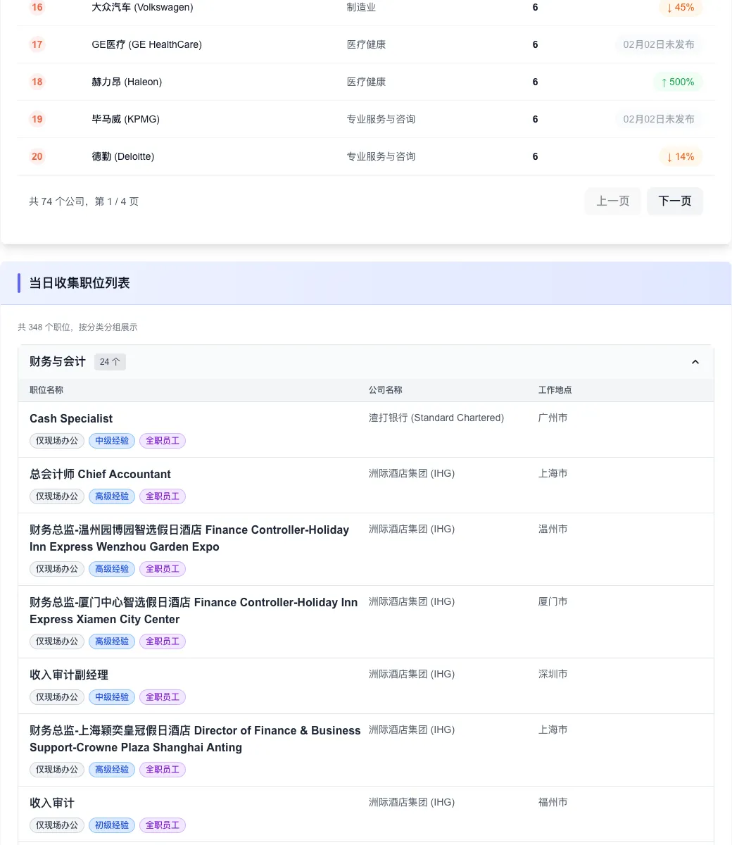 今日新增职位 348 个,环比增长高达 36.5%。 - 企业广度: