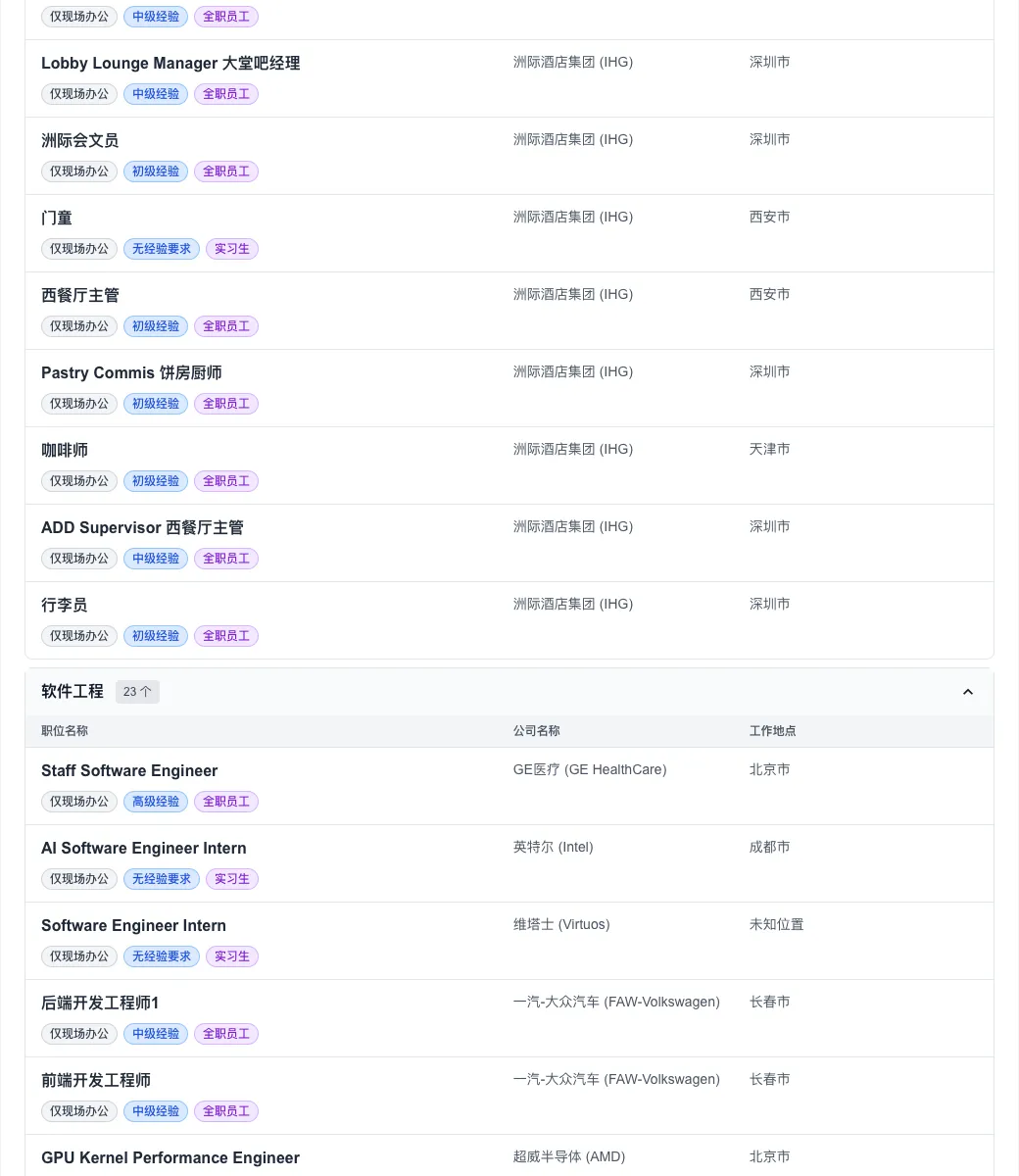 洲际酒店集团(IHG) 发布岗位29个,紧随其后。从财务总监、收入审计副经理到中餐厅副经理、保安主管,其招聘链条覆盖了酒店运营的全生命周期,显示出高端服务业对人才的精细化需求。 - 科技与平台: