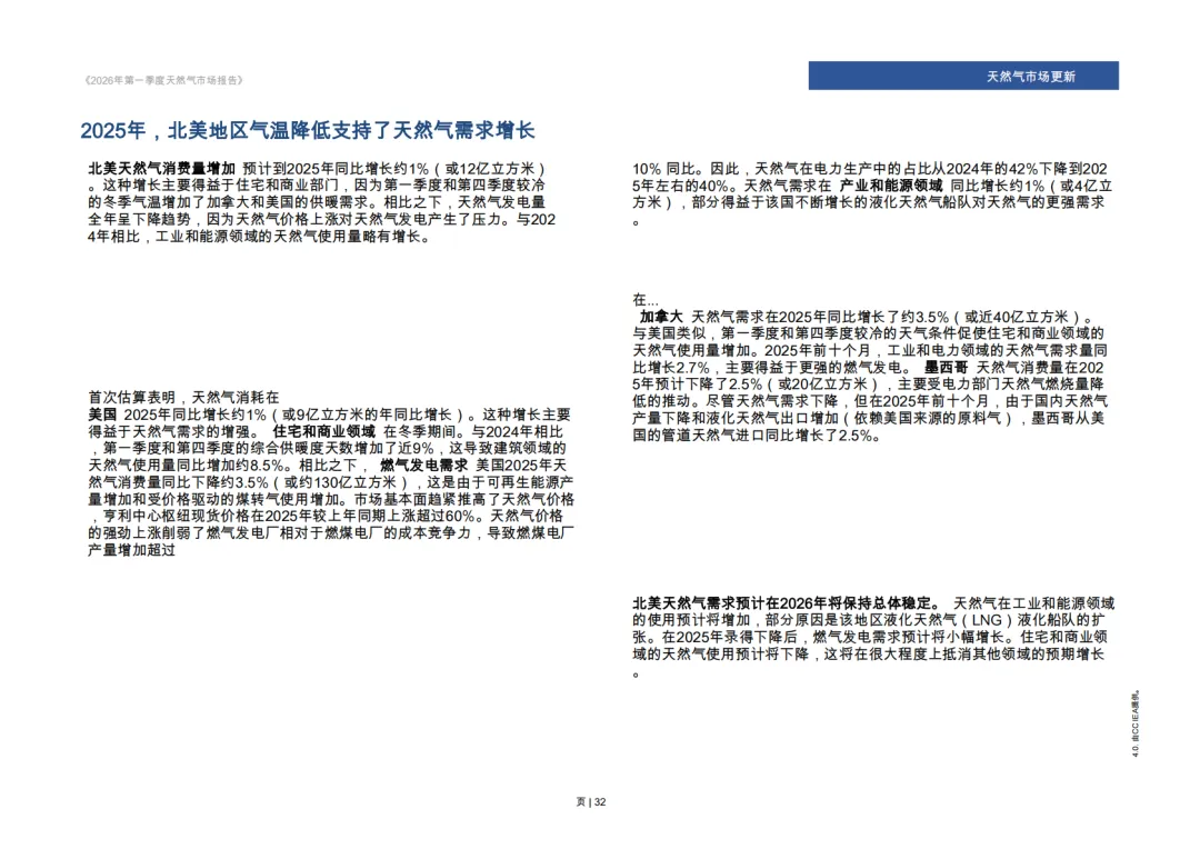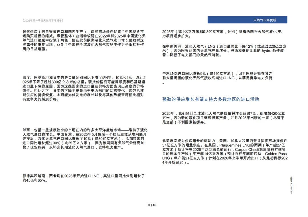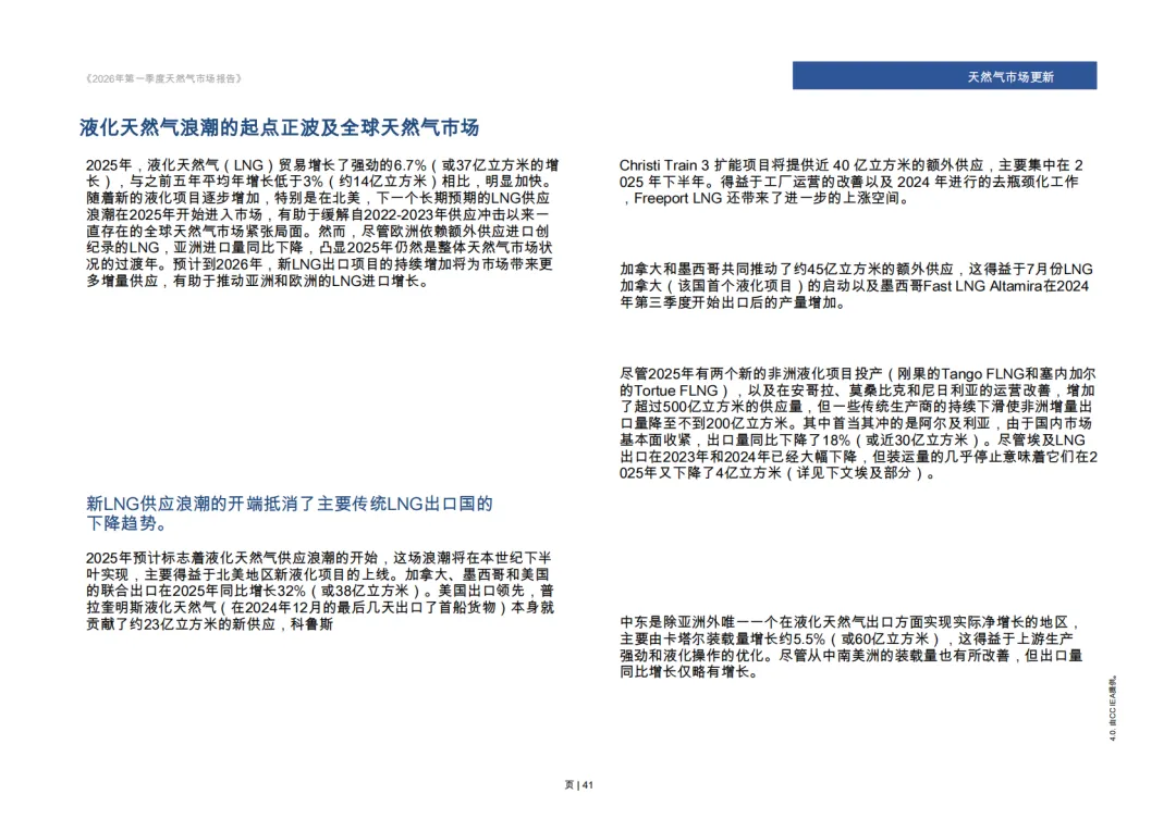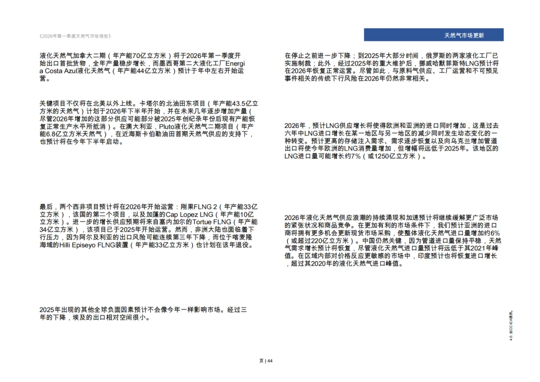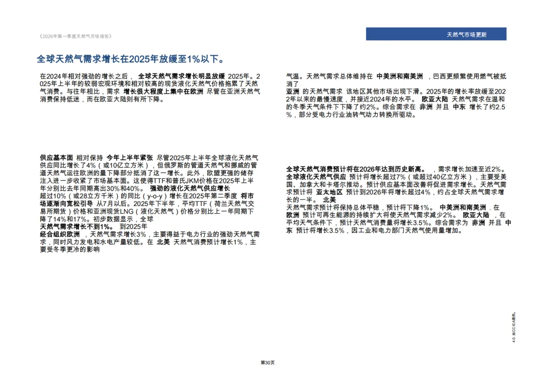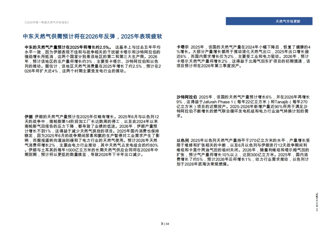 本期文章: 『调研』报告预计2026年全球天然气市场趋向宽松 气价下行通道开启
