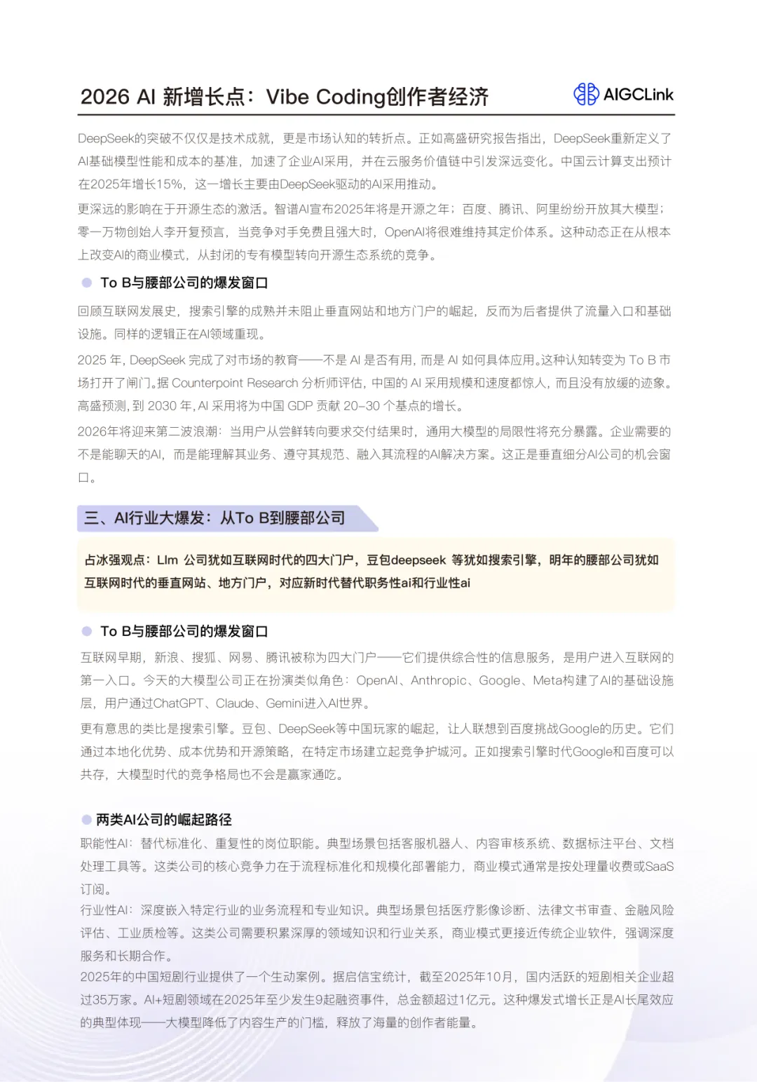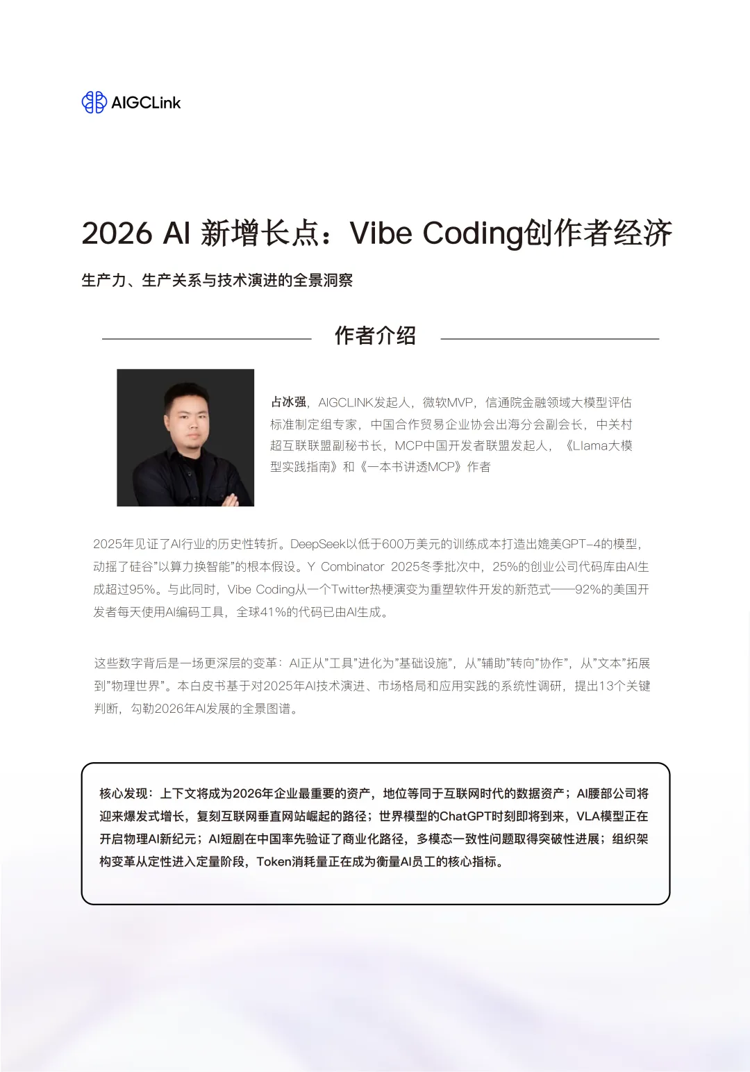 关注我们,后台回复“202602042”就可以获取《AIGCLink:2026年AIGC行业现状及发展趋势白皮书》(完整版) 的全文下载链接。