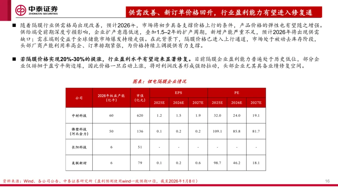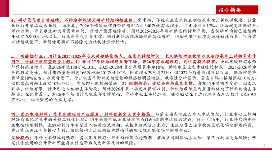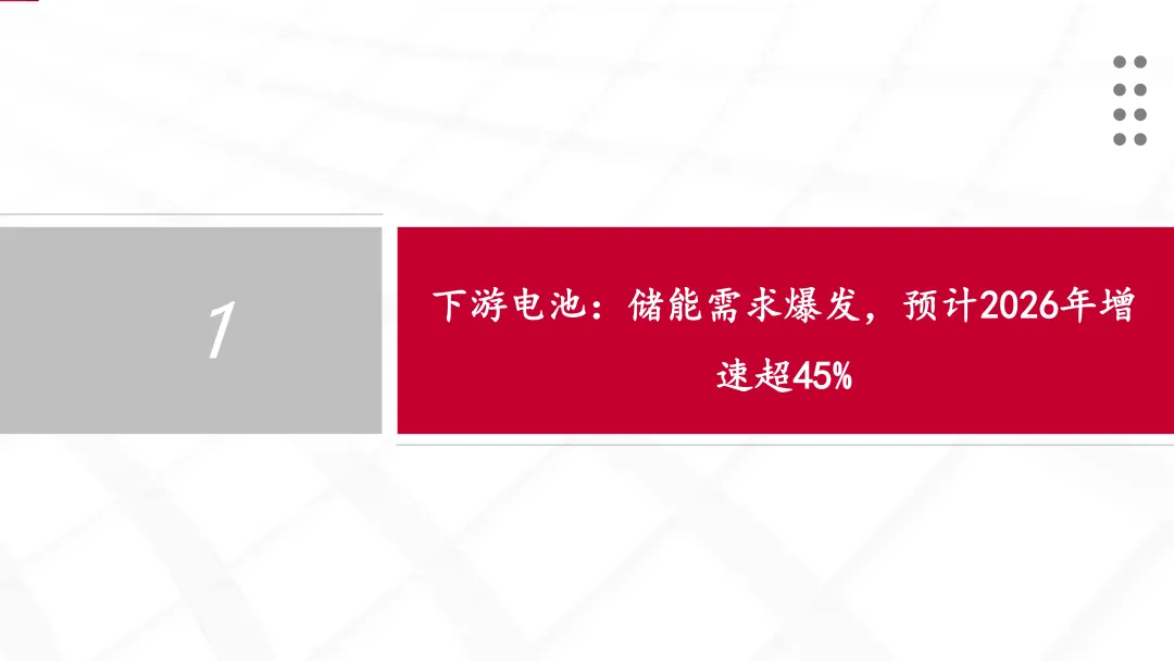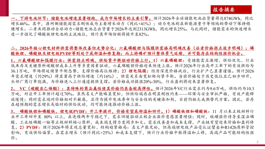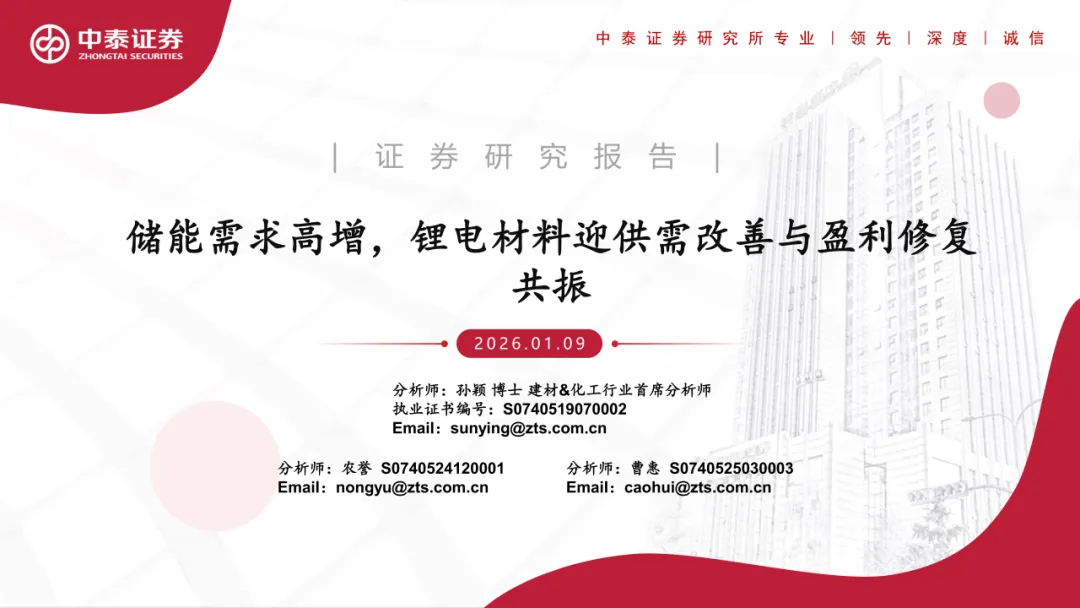 关注我们,后台回复“202602054”就可以获取《山泰证券:化工行业:储能需求高增,锂电材料迎供需改善与盈利修复共振》(完整版) 的全文下载链接。