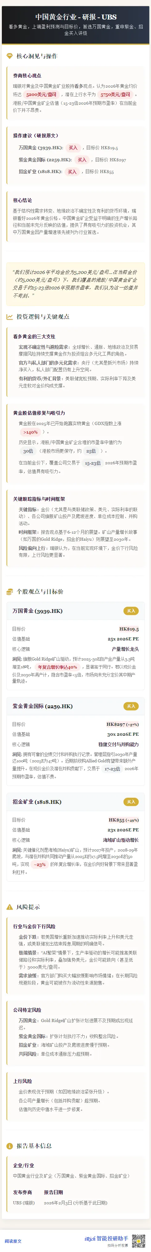 三大机构一致认为黄金矿业股存在显著阿尔法机会。瑞银覆盖的港股金矿企业当前市盈率仅15-23倍,远低于历史中位数30倍。其中万国黄金产量有望从2025年的3.3吨增至2030年的18吨,年均复合增长率达40%。估值差异更为明显:全球主要金矿企业当前股价隐含的金价预期仅为3600美元,较现货价格存在30%折价。这种错配为投资者提供了罕见的安全边际。风险提示与策略建议