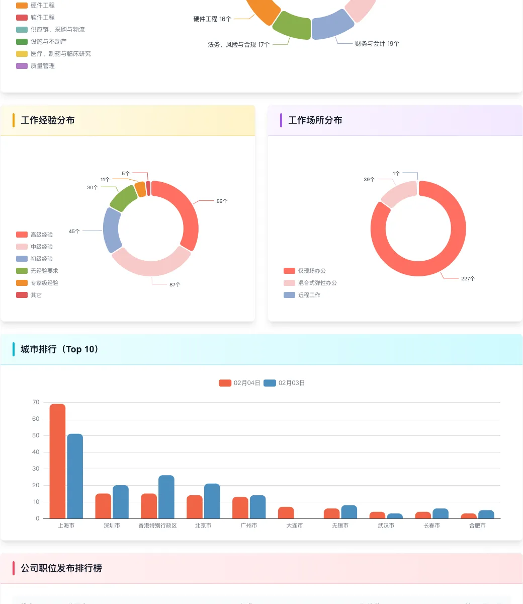 :高级经验(89岗)与中级经验(87岗)占比最高,合计超六成。这表明在当前市场环境下,具备即战力的成熟型人才仍是名企招聘的优先级。 - 地域分布