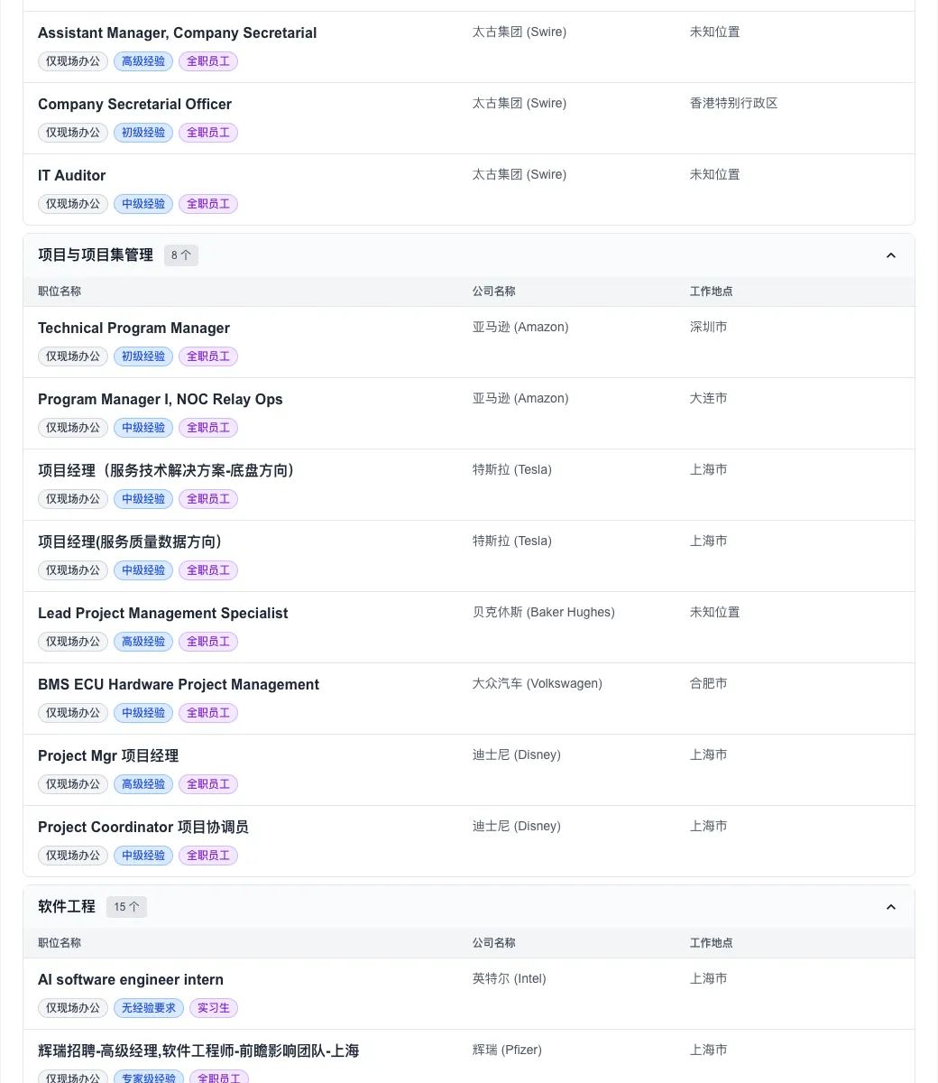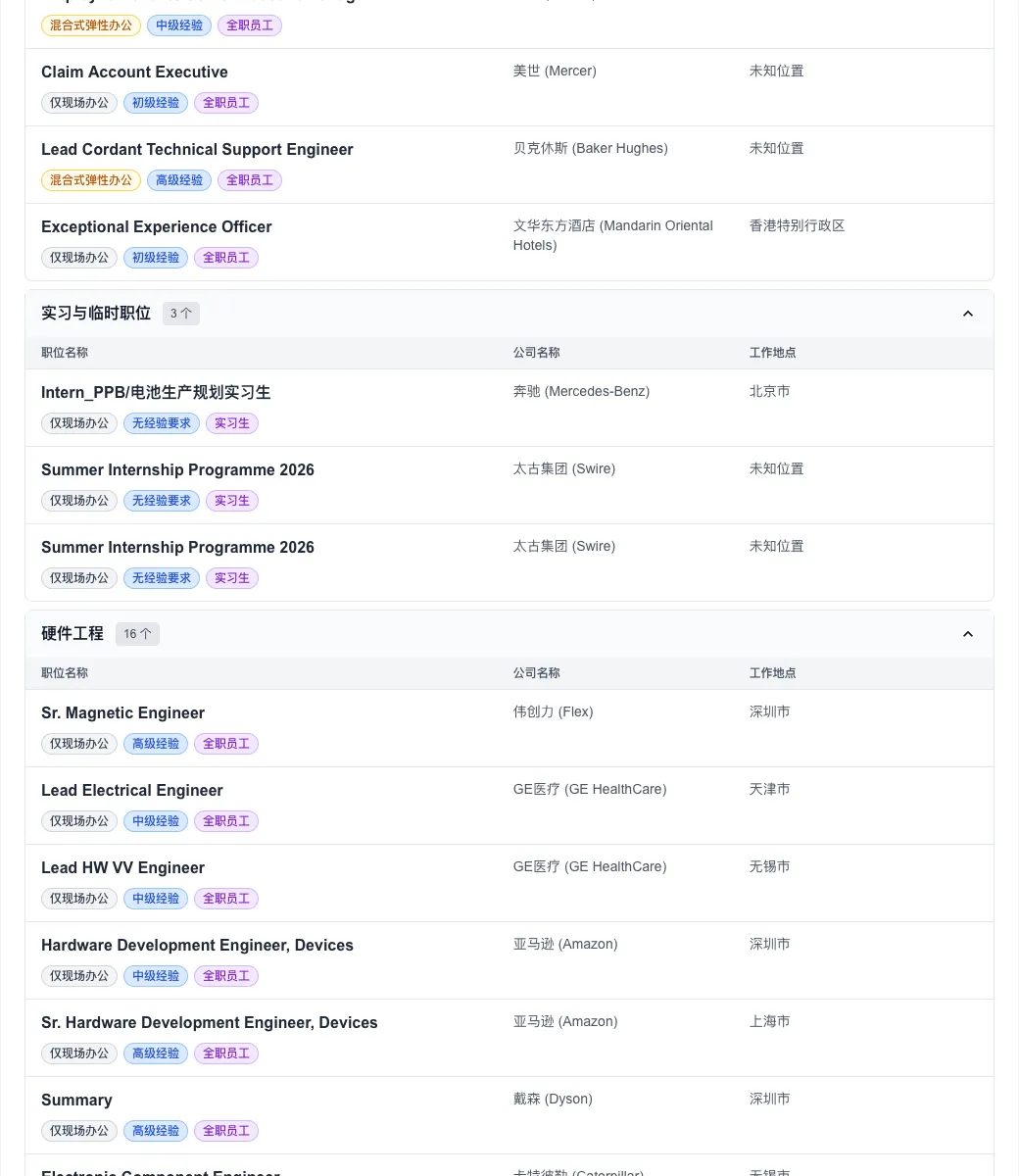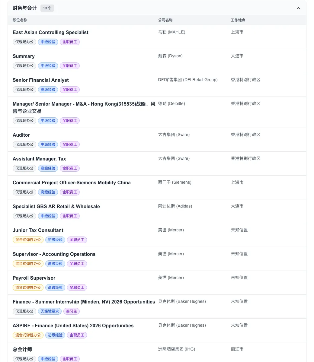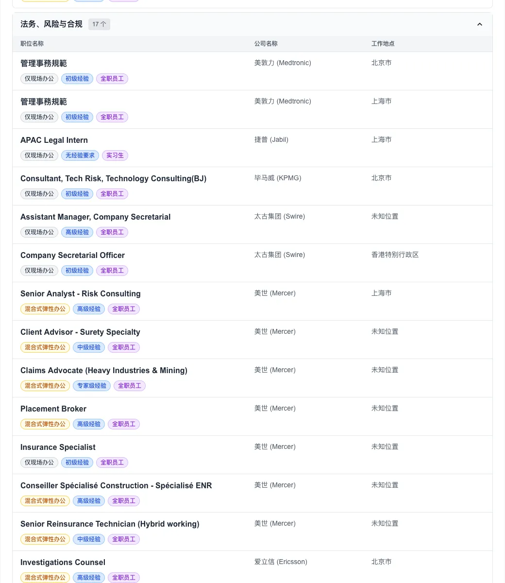 :**美世(Mercer)**今日释出 25 个岗位,主要覆盖精算、精算咨询及后台运营,是金融/咨询类求职者的重点关注对象。