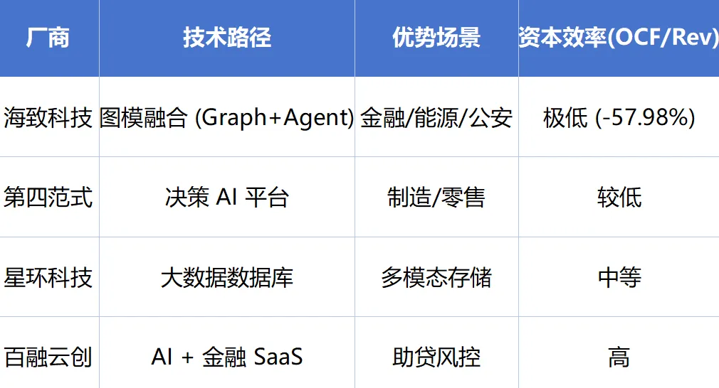 图数据库的性能壁垒(LDBC纪录)与金融/公安场景的深厚 Know-how 构成了极高的准入成本。一旦 Agent 切入核心风控流,替换成本巨大。