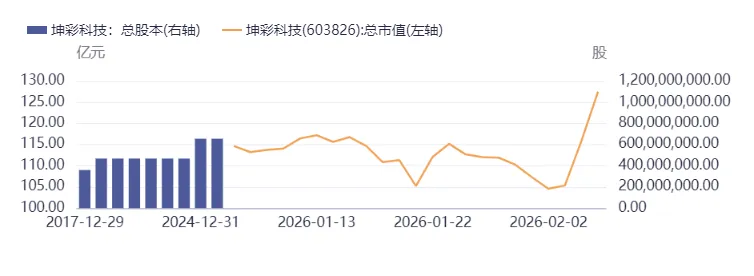 图表坤彩科技股权结构与市值规模 |
