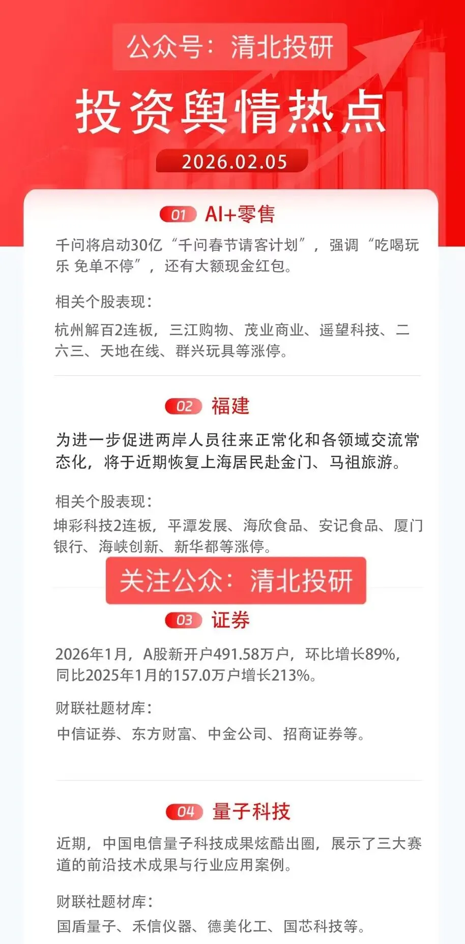 盘面上,影视传媒、旅游、食品饮料、零售、医美、中药等大消费概念全线走强;谷子经济、宠物经济等新消费概念跟涨;银行、券商板块拉升护盘;AI漫剧、AI营销、传媒、AI陪伴等AI应用概念反弹,福建本地、海峡两岸概念拉升,房地产概念持续走强,三胎、创新药、足球振兴等概念表现强势。