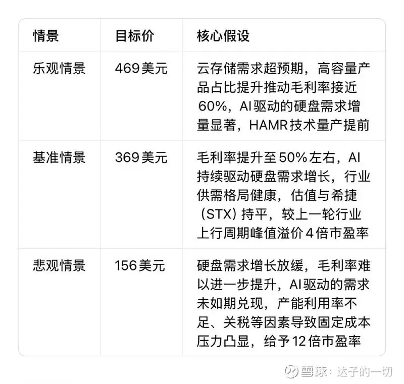 • 下行风险:毛利率未能按预期扩张,定价快速回归常态,地缘政治紧张与关税影响供应链,行业竞争加剧或HAMR技术推进延迟,可转换债券稀释超预期。