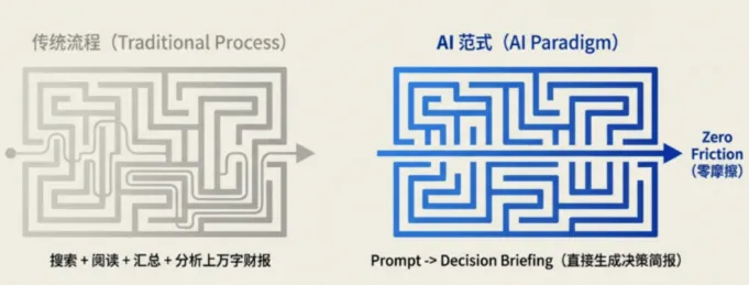 一旦 AI 可以自动完成搜索、阅读、汇总、分析上万字财报、整合专业论文并直接生成决策简报,这种对昂贵系统的依赖就会被削弱。当结果可以被一键获得时,工具本身就不再值钱了。