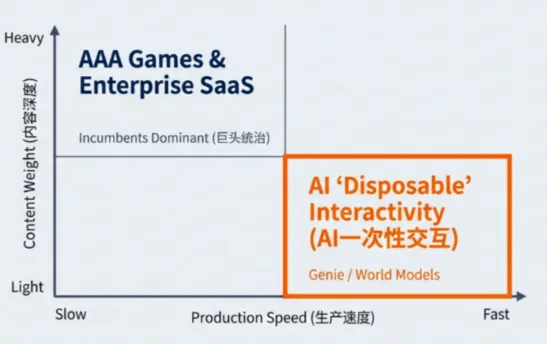 换句话说:Genie 降低的是起步成本,而不是成功概率。当制作门槛被压低之后,稀缺性并不会消失,而是发生迁移——从“生产工具”,转移到“筛选、分发、品牌与运营体系”。
