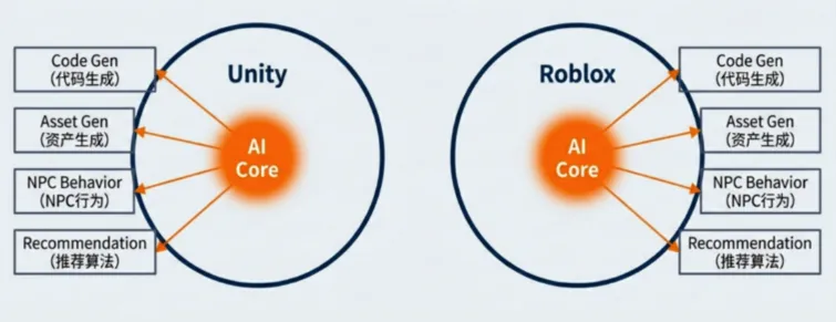 从代码生成、资产生成,到 NPC 行为、内容匹配与推荐,这些平台早已将 AI 系统性地纳入自身工具链。这并不是“新模型对旧平台的单向冲击”,而是一场整个行业同步卷入的生产力竞赛。
