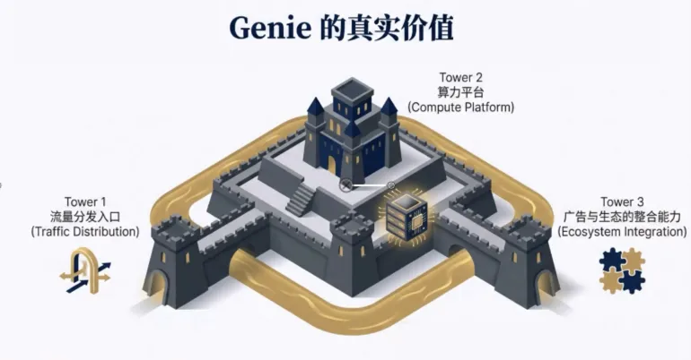 需要强调的是,高盛看重的并不是 Genie 本身能否直接变现,而是它是否持续强化了谷歌在以下几个核心位置上的长期优势:流量分发入口、算力平台、以及广告与生态的整合能力。