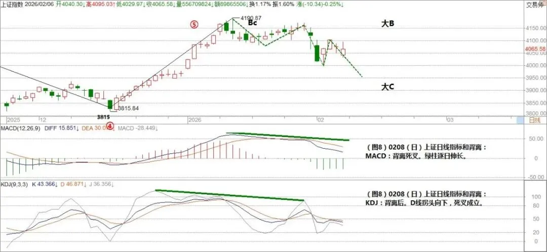 (图8)0208(日)上证日线指标和背离: