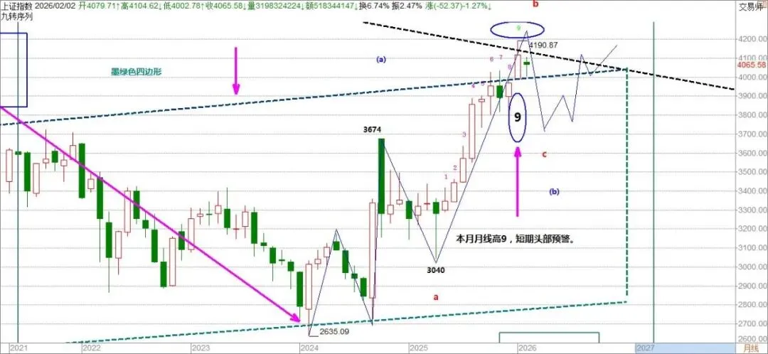 本月月线九转系是高9,值得关切。