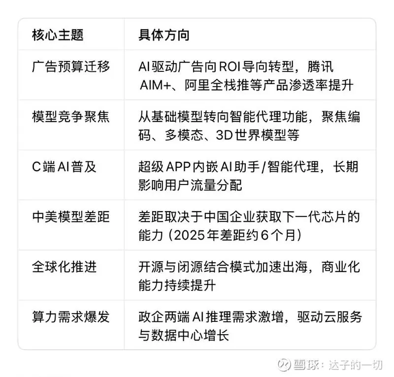 • 业务延伸:AI能力已渗透电商、到店业务,同时重启社交/即时通讯领域野心,成为行业主要变量。