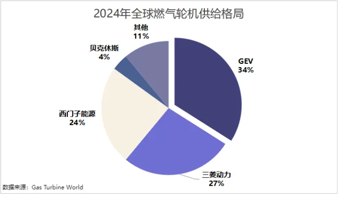 目前,全球燃机市场高度集中,GEV、三菱动力、西门子、贝克休斯等巨头占据了近90%的份额。