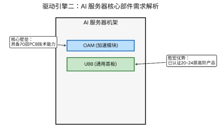 业绩大爆发的背后,第一个核心引擎来自于高端显卡市场。随着AI大模型从云端向端侧(Edge AI)加速渗透,AIPC(人工智能个人电脑)正在成为行业的新风口。为了在本地运行复杂的AI模型,PC需要搭载性能更强大的GPU(图形处理器)。研报指出,高性能GPU对PCB板的要求极高,需要采用高密度的HDI(高密度互连)技术,甚至是任意层互连(Anylayer HDI)技术,以满足高速信号传输和复杂布线的需求。这类高端PCB板价值量远高于普通产品。胜宏科技作为北美头部显卡客户的核心供应商,深度卡位这一赛道。随着RTX 50系列等新一代高端显卡的备货需求启动,公司高阶HDI产品迎来量价齐升,成为推动Q3业绩增长的关键力量。【图2:高端显卡与HDI技术图解】03|驱动引擎二:AI服务器井喷,决胜“大算力”时代