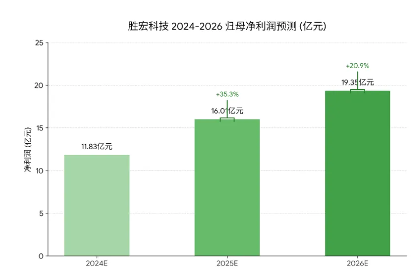 基于Q3的超预期表现以及两大驱动力的持续性,研报对胜宏科技的未来发展持乐观态度。在产能方面,公司正在加速全球化步伐。越南工厂已顺利运营,新建的泰国工厂预计将在2025年下半年或2026年上半年实现规模量产。这将进一步增强公司应对地缘政治风险的能力,并更好地服务全球客户。考虑到高端显卡和AI算力业务的高确定性增长,分析师上调了公司的盈利预测,预计2024-2026年归母净利润将分别达到11.83亿元、16.01亿元和19.35亿元,维持“买入”评级。【图4:未来三年净利润预测增长图】免责声明:以上内容为信息整理与逻辑分析,不构成任何投资建议。