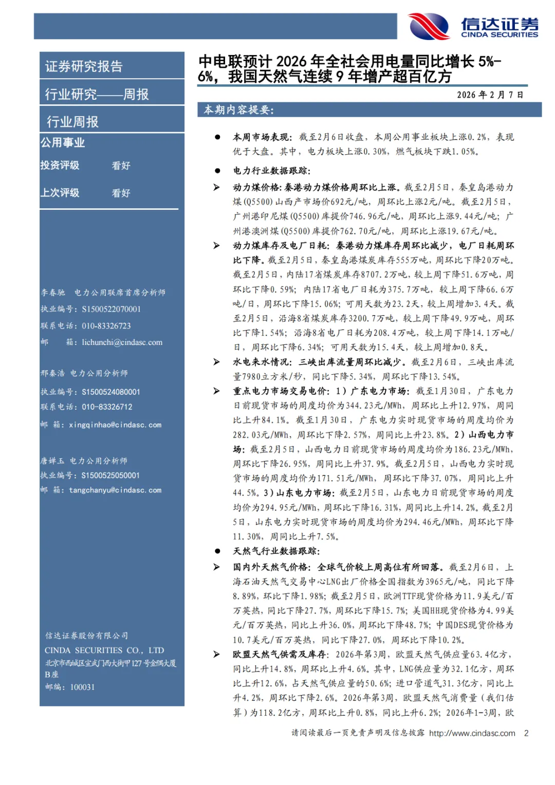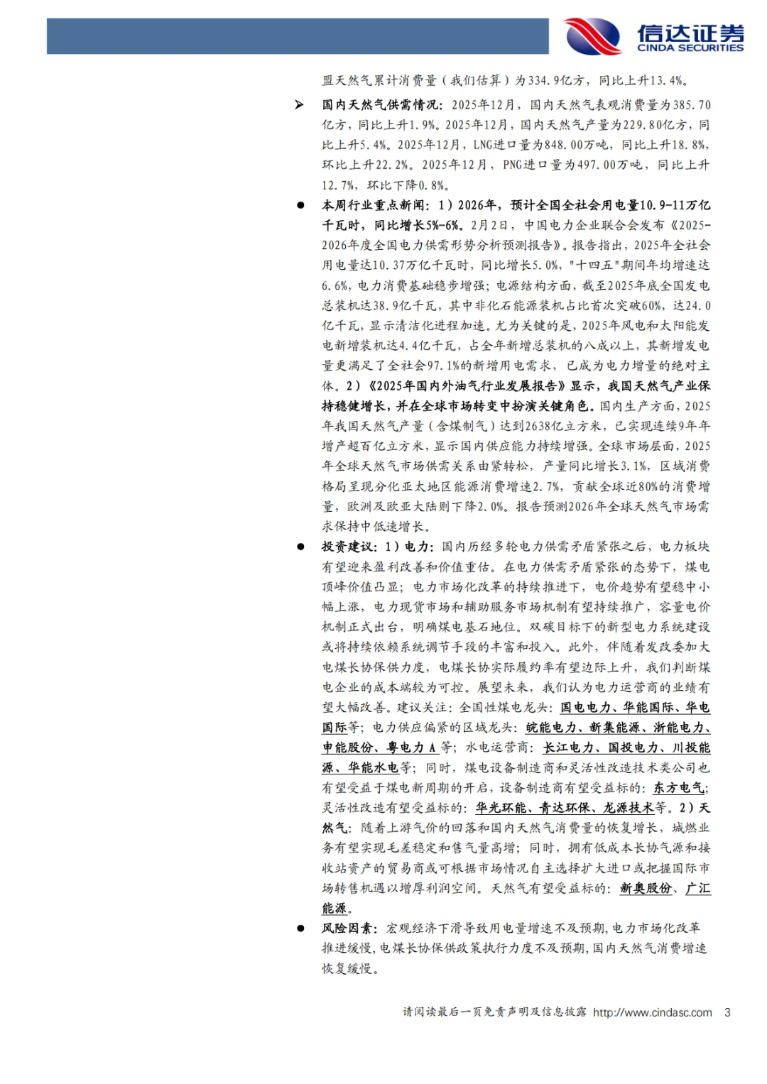 『研报』电力天然气周报:中电联预计2026年全社会用电量同比增长5%_6%,我国天然气连续9年增产超百亿方