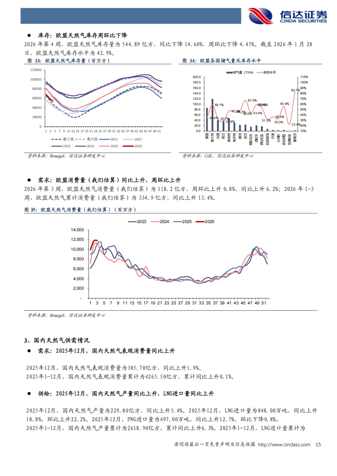 消费特点:2025年1-12月,国内天然气产量累计2618.90亿方,累计同比上升6.3%;LNG进口量累计6843.00万吨,累计同比下降10.7%。