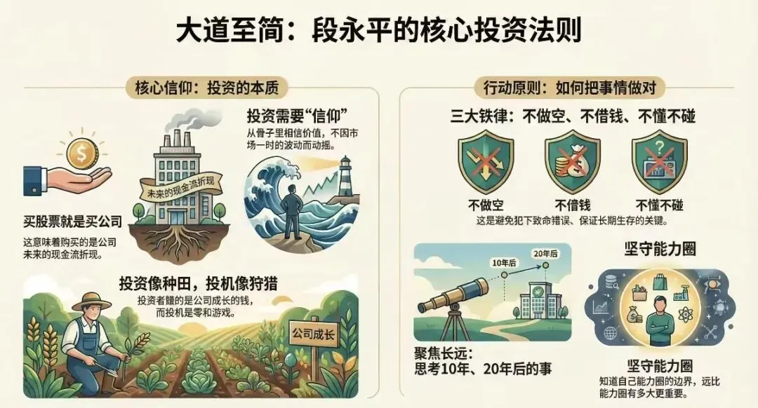 最近重读段永平在《大道》里的投资心法,越看越觉得通透。