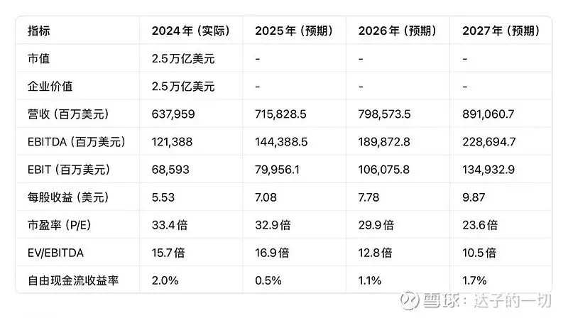 表3:亚马逊未来业绩预测与估值指标