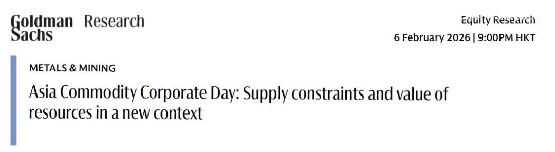 2026 年 2 月 2 日至 4 日,高盛举办了亚洲大宗商品企业日活动,邀请了 13 家覆盖铜、铝、锂、钨、镍、钴、稀土、黄金、白银、石墨、钾肥、煤炭等多类大宗商品及电池材料的核心企业参与。这份于 2 月 6 日发布的研报,基于活动中的深度交流,系统梳理了行业共识与企业战略布局,核心聚焦 “新背景下的供应约束” 这一核心矛盾,揭示了资源价值重估的底层逻辑,并给出了针对性的企业评级与投资参考,为投资者把握 2026 年及未来 3-5 年亚洲大宗商品市场趋势提供了关键依据。