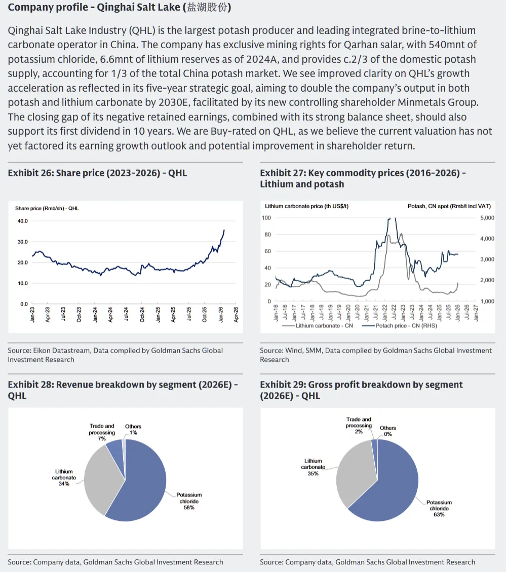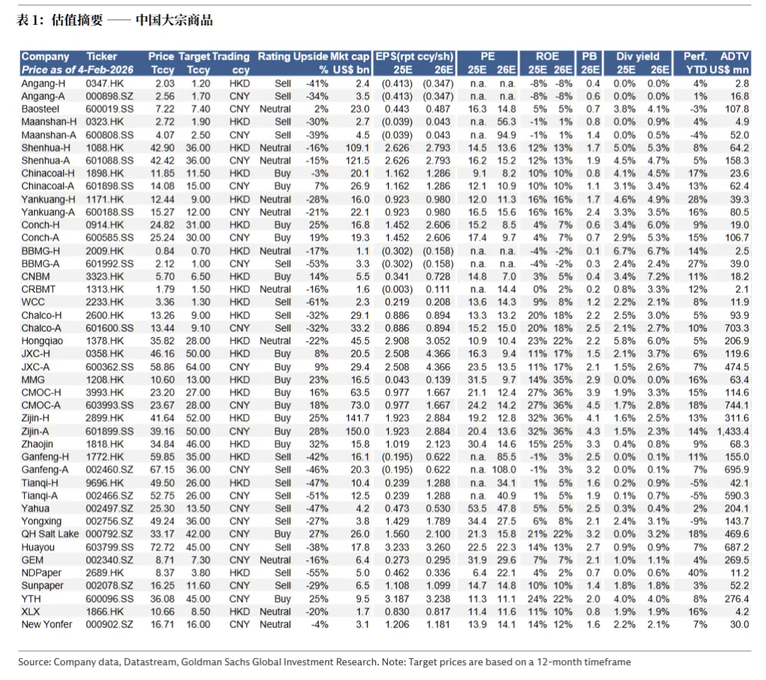 高盛对具备核心资源掌控力、产能扩张明确的企业给予积极评级:洛阳钼业(A/H 股均为买入,目标价分别 28 元 / 股、27 港元 / 股)、紫金矿业(A/H 股均为买入,目标价分别 50 元 / 股、52 港元 / 股)、盐湖股份(买入,目标价 42 元 / 股)等位列其中;而部分面临行业过剩或业务转型压力的企业被给予卖出评级,包括华友钴业(卖出,目标价 45 元 / 股)、Liontown Resources(卖出,目标价 1.45 澳元 / 股)等,主要担忧其所在细分市场供需失衡或盈利改善空间有限。