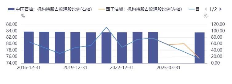 图表西子洁能主要股东持股比例与机构持股占比对比 |