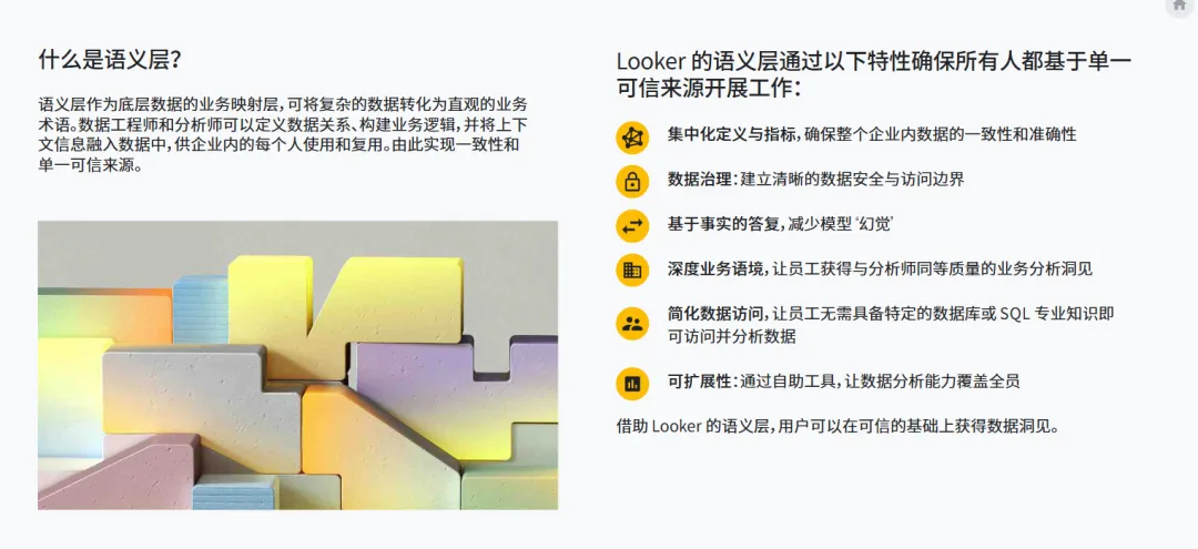 谷歌给出的解决方案,是基于Looker平台+Gemini大模型打造的对话式分析体系,这一体系的核心基石是Looker语义层,也是图2(构建统一可信数据源) 的核心内容:语义层作为数据的业务映射层,把复杂数据转化为通用业务术语,让全企业用统一的指标和定义看数据,直接将生成式AI自然语言查询的错误率降低66.7%,彻底解决了LLM生成SQL时的指标歧义、计算错误问题,让数据对话的准确性有了根本保障。