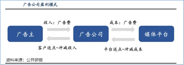 蓝色光标的本质是一个连接广告主与媒体平台的营销服务中介。其业务模式主要为集合上游广告主的广告预算,根据客户的营销需求制作内容,并将预算分配到下游媒体中。