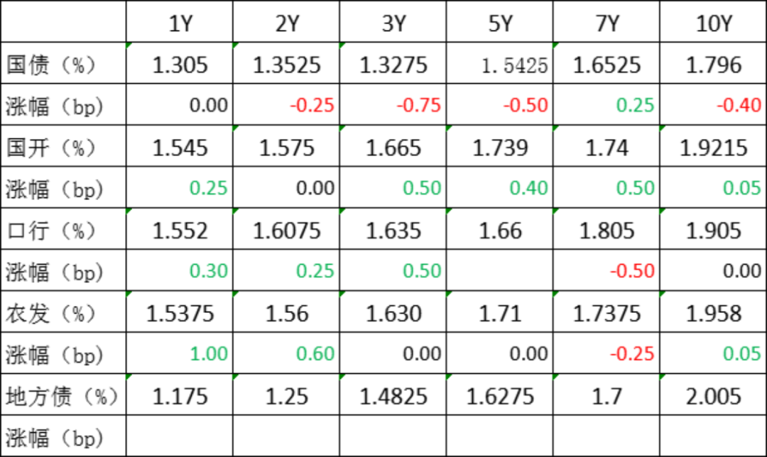 截止17:15,利率债二级市场中,利率成交价格总体呈上涨趋势,其中上涨程度较大的有3年期口行债,收益率上涨0.5bp,报1.635%;1年期农发债,收益率上涨1bp,报1.5375%;2年期农发债,收益率上涨0.6bp,报1.56%,3年期国开债,收益率上涨0.5bp,报1.665%。