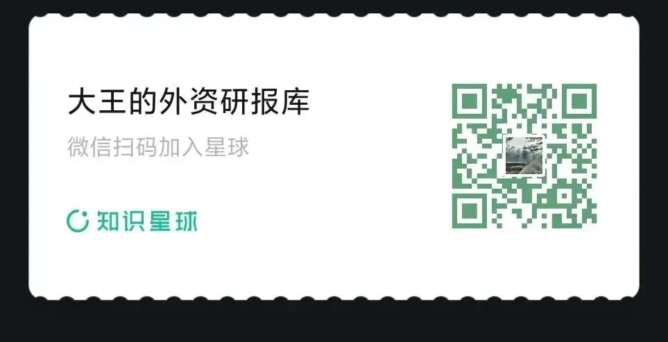 需要完整报告,可以通过我的首页店铺的服务,来我的外资研报知识星球,收集了包含高盛、大摩、美银、花旗、瑞银、巴克莱、摩根大通、摩根史坦利、野村等顶级外资咨询公司和投行的世界顶级研报,我将按照企业调研、行业跟踪、股市汇率、深度宏观等专题为您整理,为您的决策提供高质量的信息,帮您闭坑、穿越周期、财务自由。