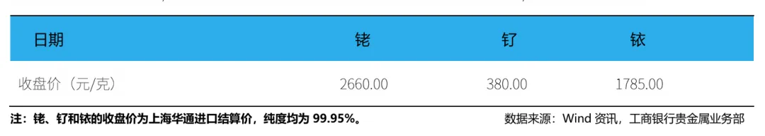 根据上海华通的数据显示,截至2月6日,99.95%现货铑金进口结算价为2660元/克,下降7.64%。99.95%现货钌金进口结算价为380元/克,上涨0%。99.95%现货铱金进口结算价为1785元/克,上涨0.85%。