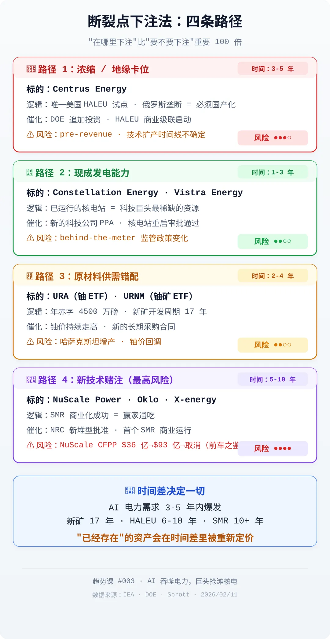 这些反面不是说核电没价值。而是说:如果你懒得区分价值链上不同环节的风险差异,你不是在投资,你是在追叙事。
