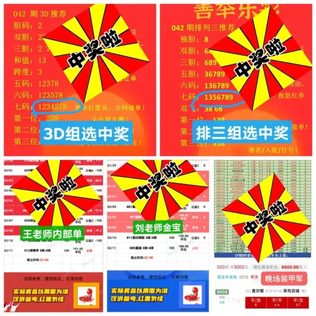 昨日推荐回顾:3D、排三分别拿下组选!足球收米3单!