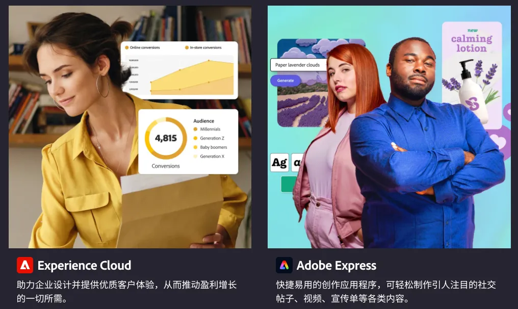 教育与培训:通过Adobe Express等入门级产品吸引新用户,再逐步引导至专业版,形成用户成长路径
