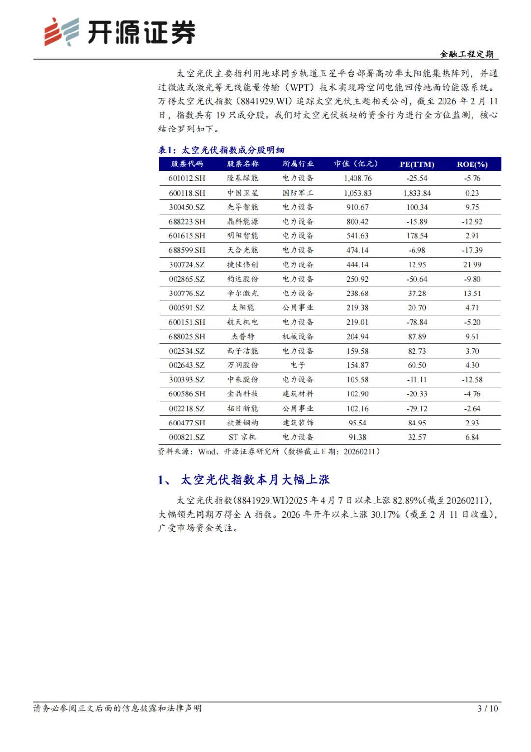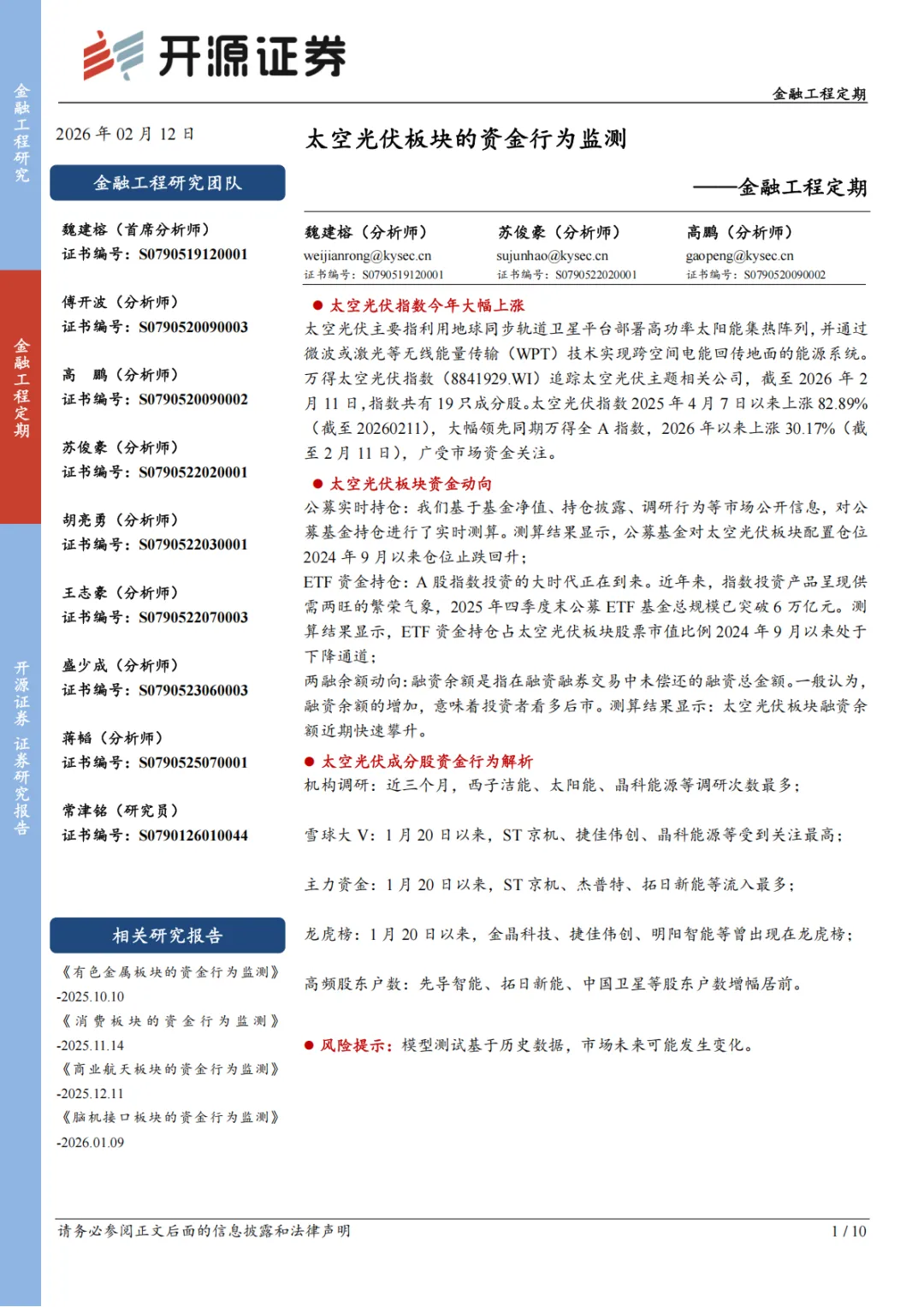 『研报』金融工程定期:太空光伏板块的资金行为监测