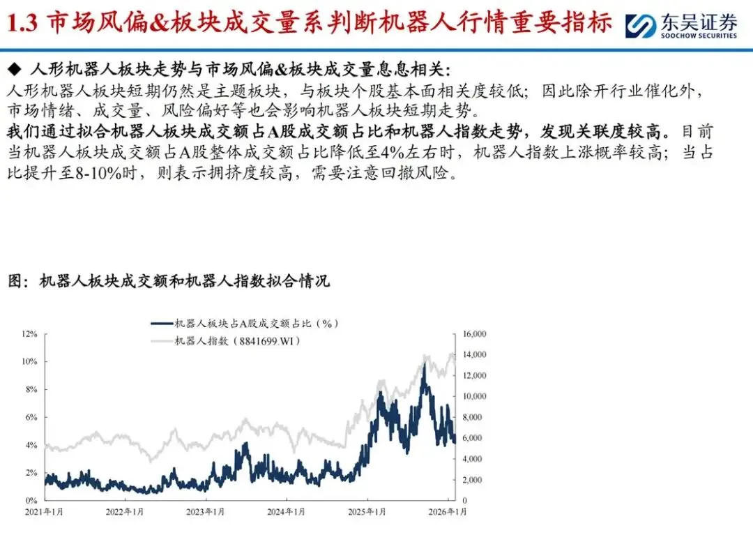 ▲行情关键判断指标:板块属主题性行情,与基本面关联低,和市场风偏、成交量高度相关 —— 成交额占 A 股比达 4% 左右时上涨概率高,8-10% 时拥挤度高、存回撤风险。