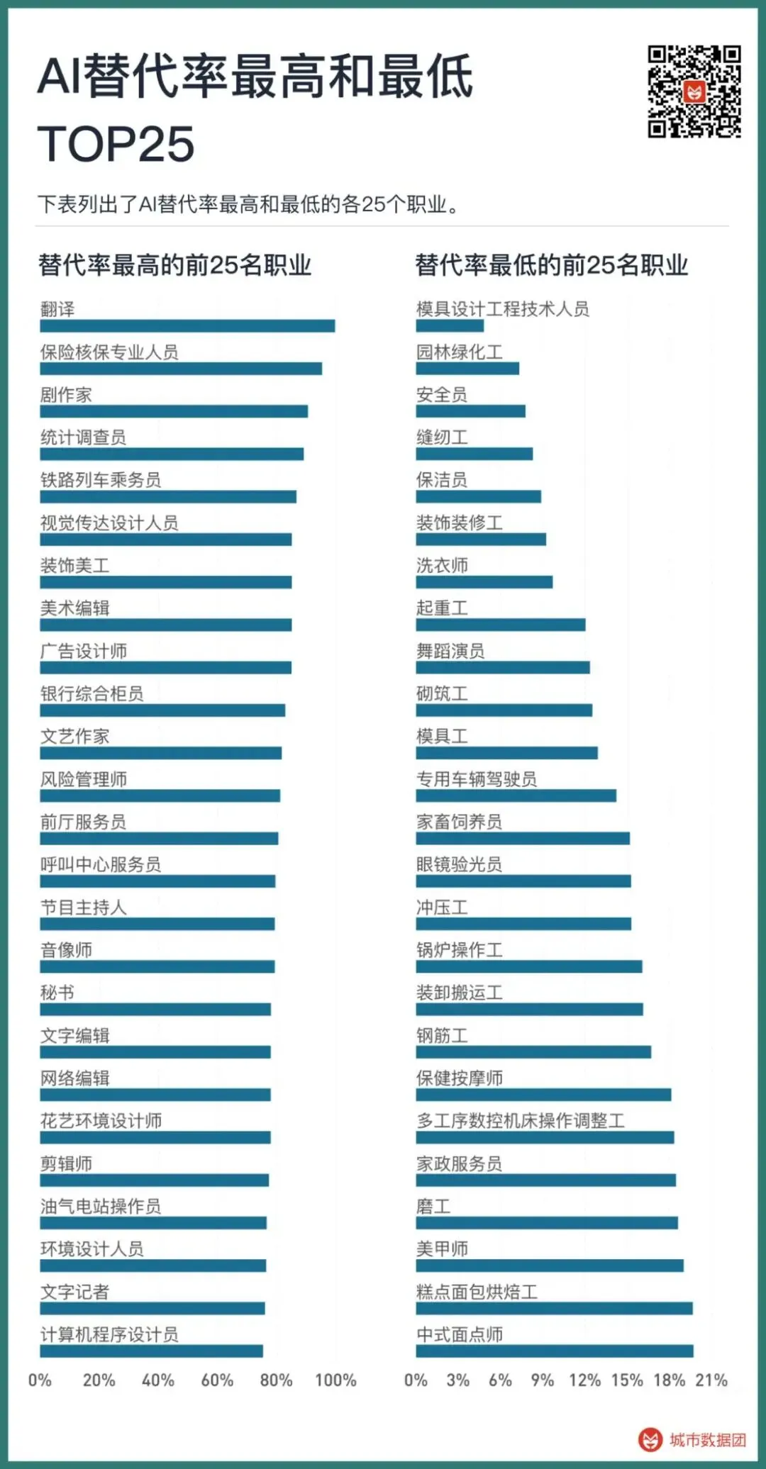 根据花旗的研报,AI可能影响中国约31%的就业岗位。其中9.6%的岗位——也就是大约7030万个岗位,面临被直接替代的风险。其余21.4%的岗位虽然会因为AI的应用获得生产率提升,但整体可用岗位数量也可能因此减少。计算下来,直接替代风险涉及7030万岗位,加上生产率提升但岗位需求可能缩减的部分,总共影响的就业规模将超过1.57亿人。