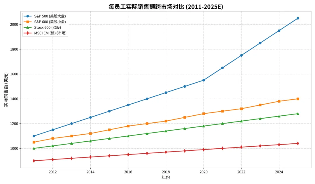 图3:每员工实际销售额跨市场对比 (2011-2025E)