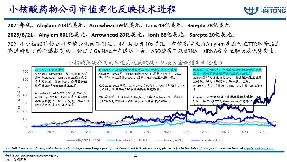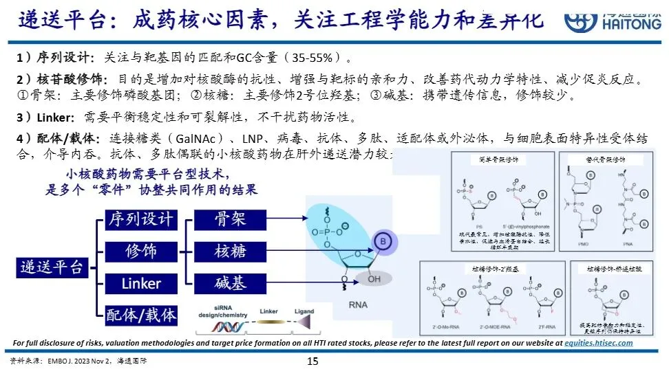 递送技术是小核酸药物成败的核心(见后附截屏6)。行业已从追求“药效”(Potency)转向追求“精准与安全”(Specificity)。